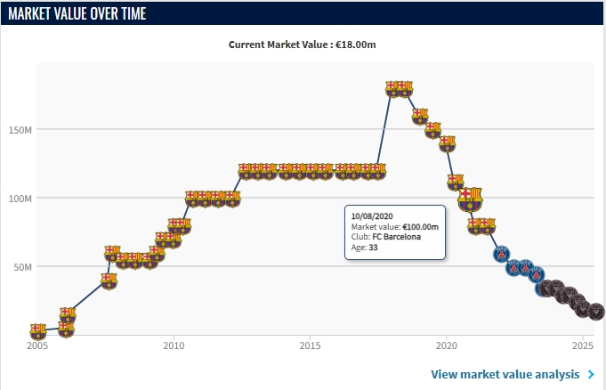 梅西33岁身价走势↓