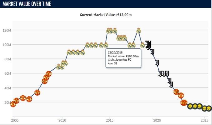 C罗33岁身价变化↓